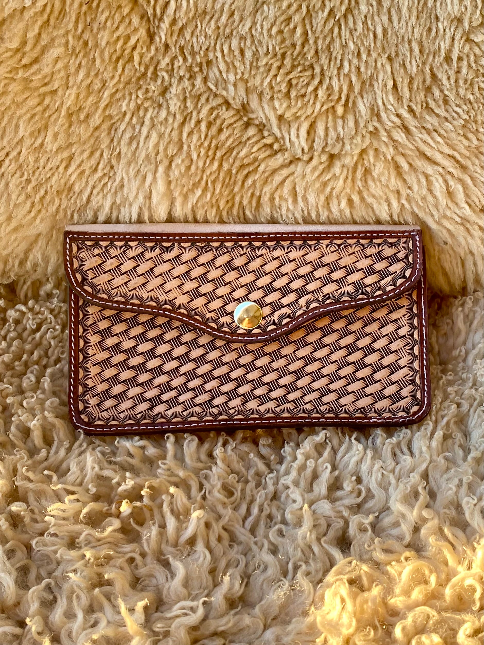 Designed to carry a variety of phones these cases are 7.25” long by 4.25” wide and have a 1” gusset! Double belt loops on the back help hold it secure on your belt while the snap closure in the front secured the phone inside.