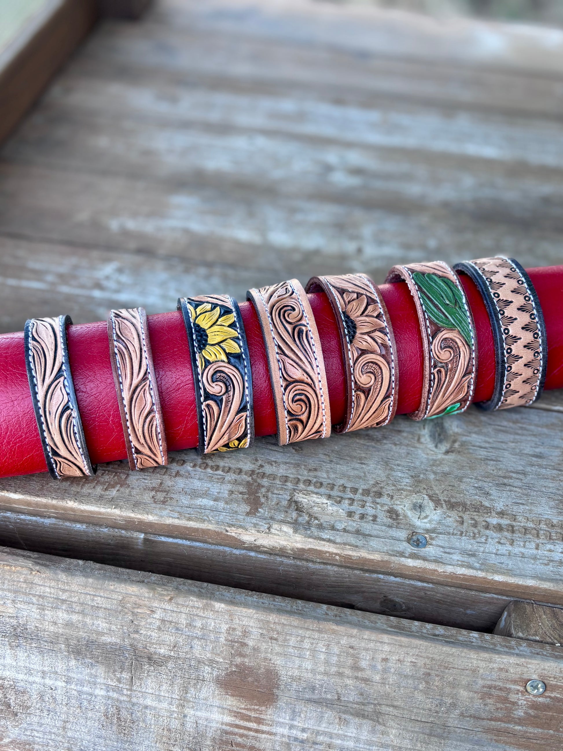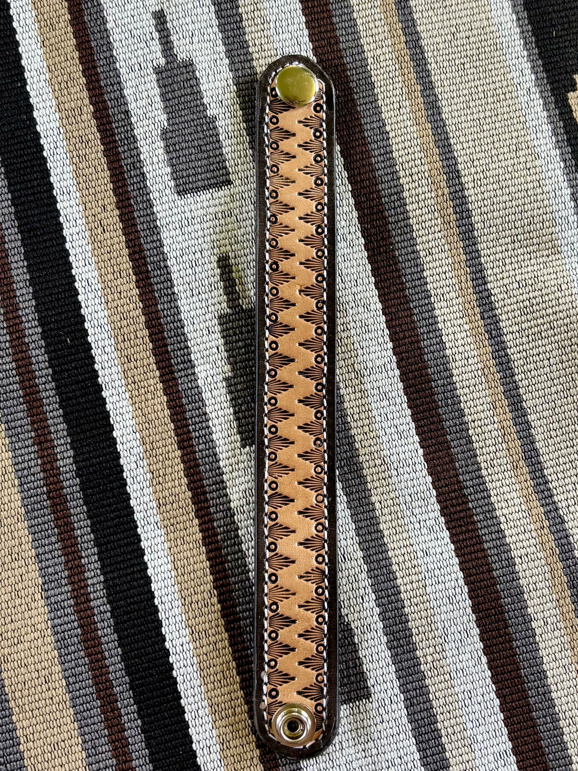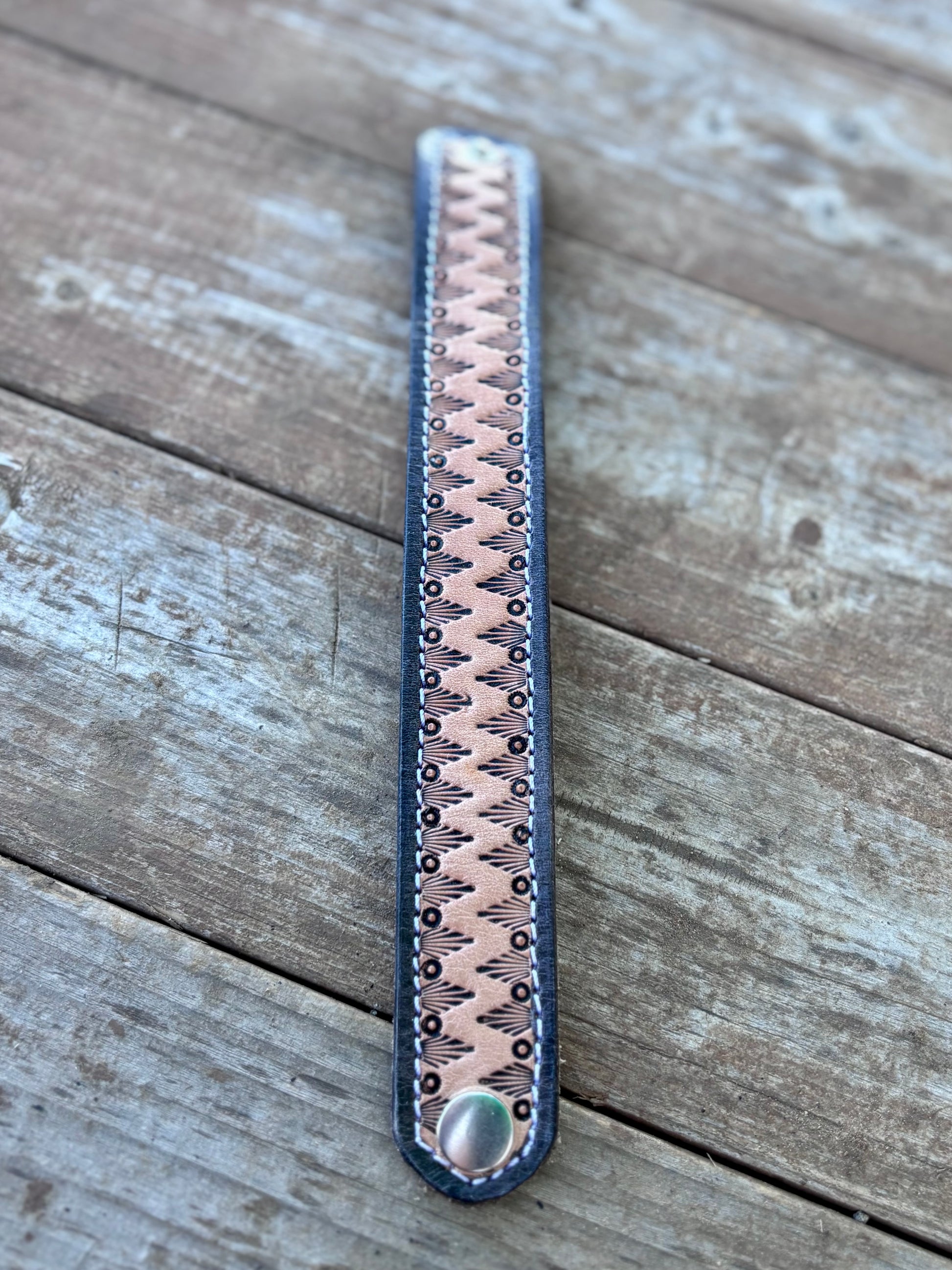 Measure your wrist before you purchase please! Approximately 8.5” in length when snapped closed— the larger cuffs are 1” wide and the smaller cuffs are 3/4” wide.