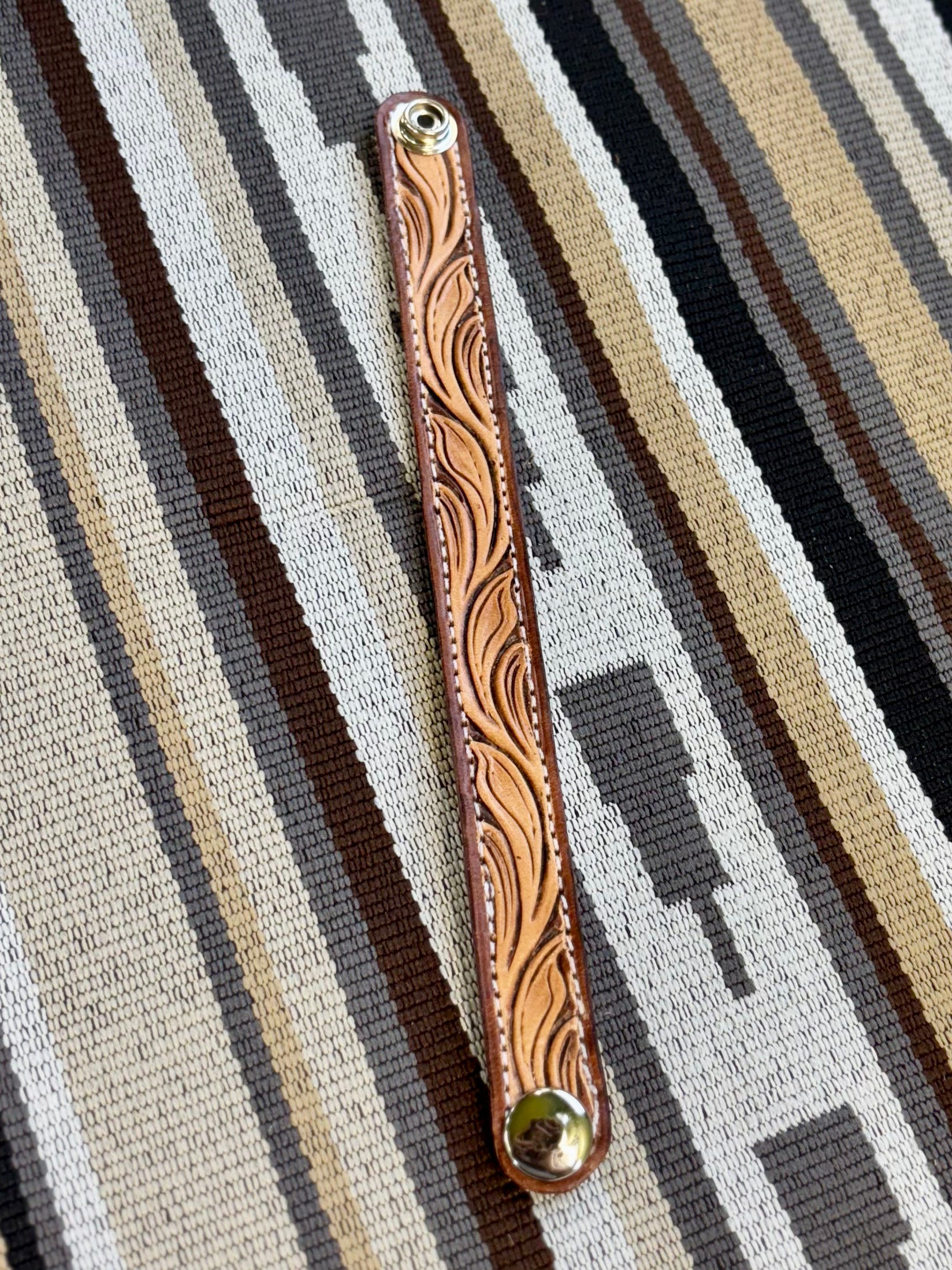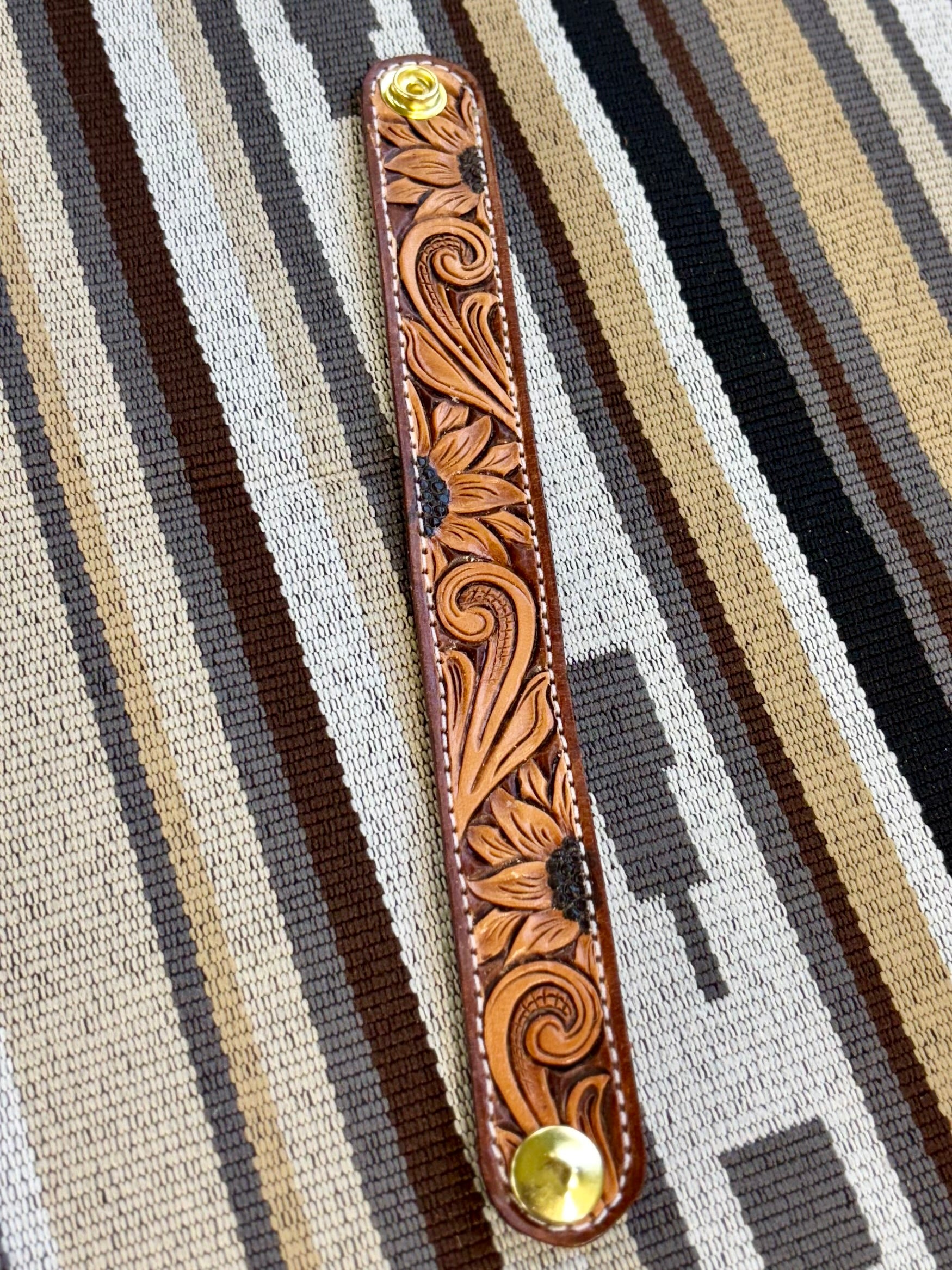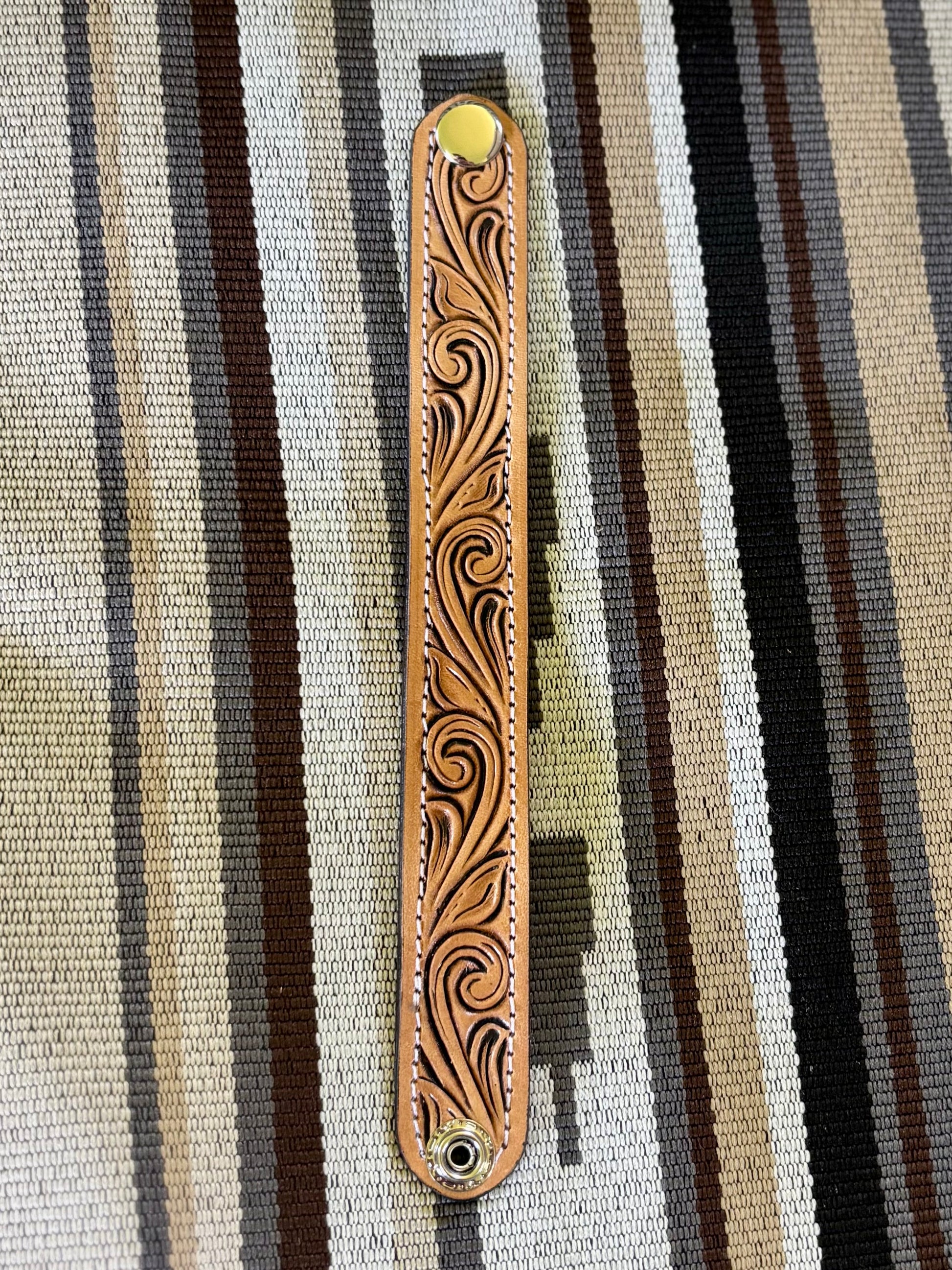 Measure your wrist before you purchase please! Approximately 8.5” in length when snapped closed— the larger cuffs are 1” wide and the smaller cuffs are 3/4” wide.